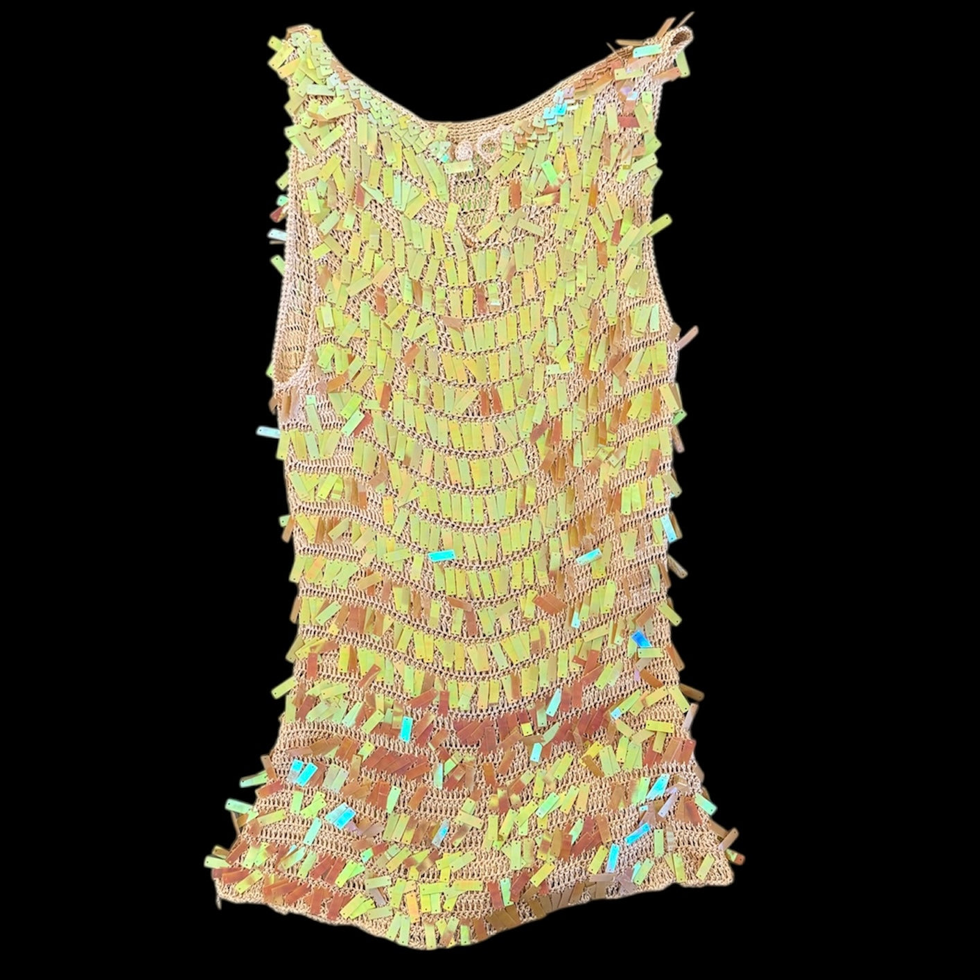 All over iridescent holographic rainbow gold sequins embroidered on with rectangular shape