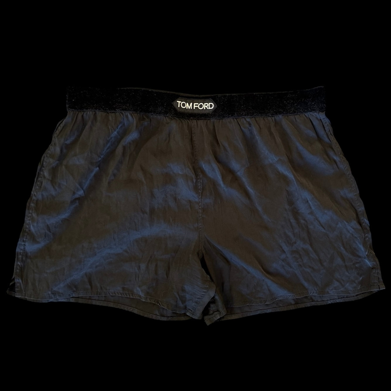Black silk boxers style featuring velour velvet waistband with Tom Ford logo