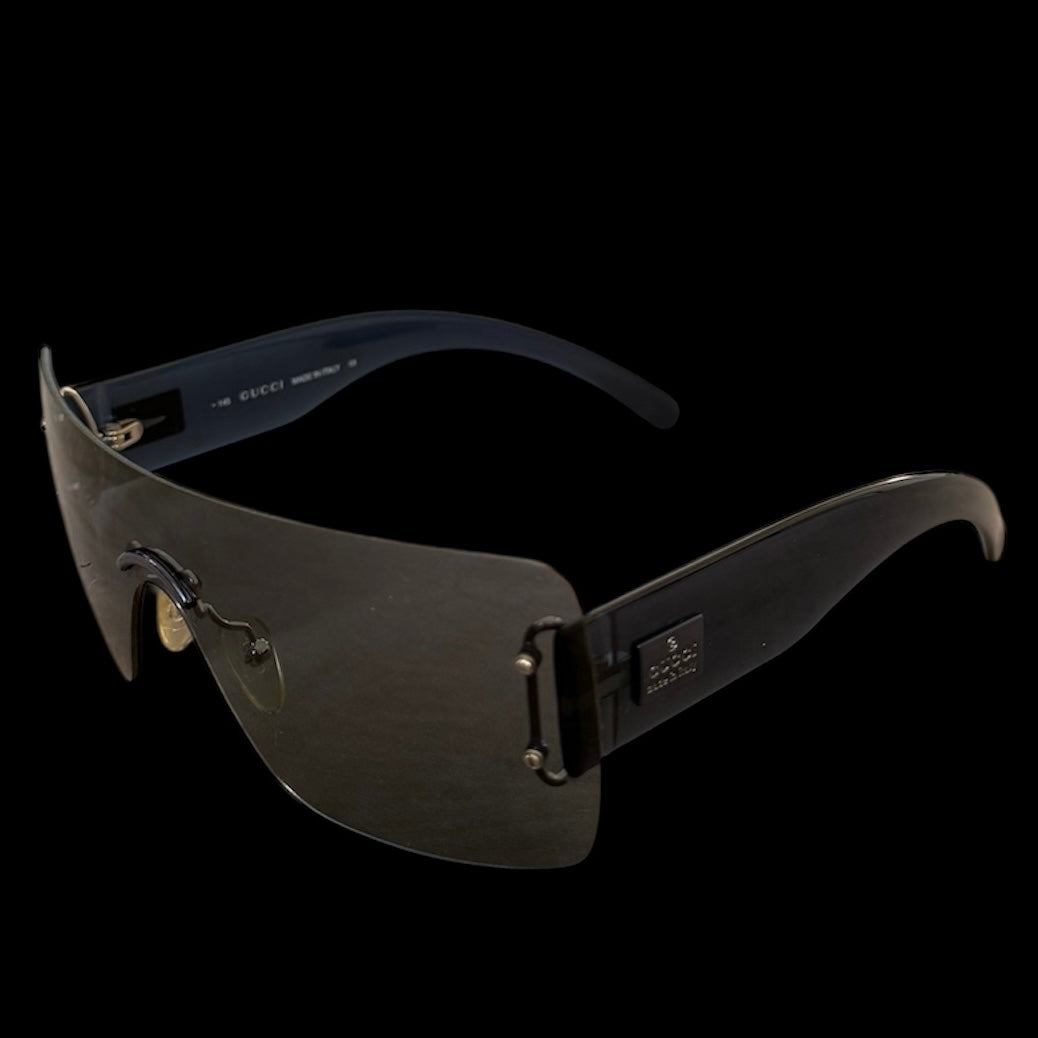Y2K 2000s Gucci square rimless sunglasses in tinted grey blue color way