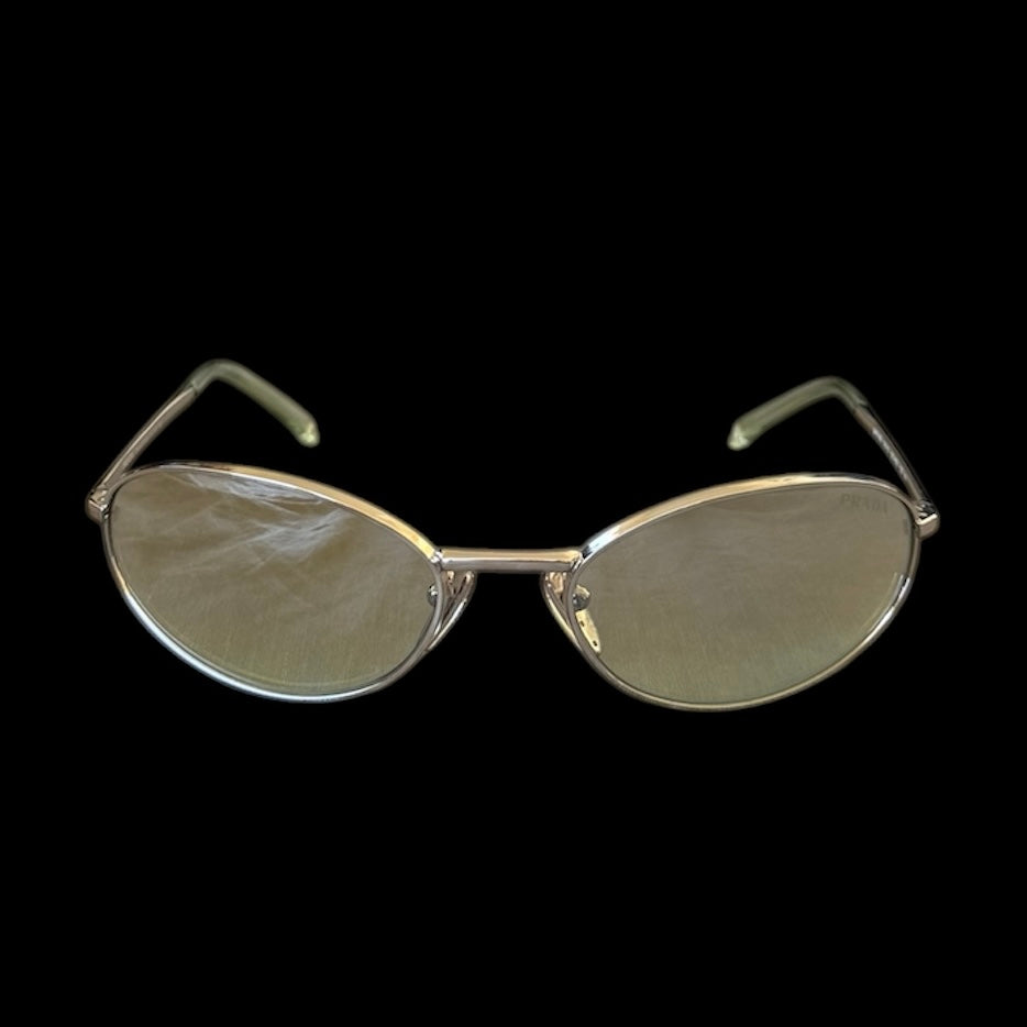 Prada silver rounded small sunglasses with green lenses