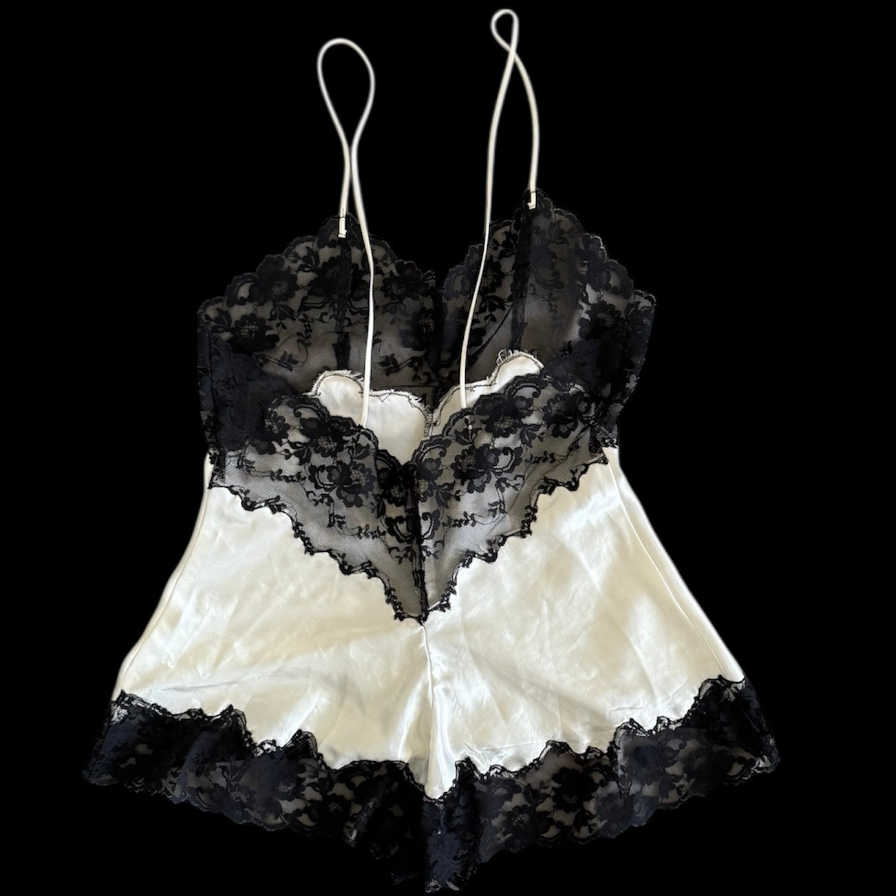Black and white lace trim satin romper